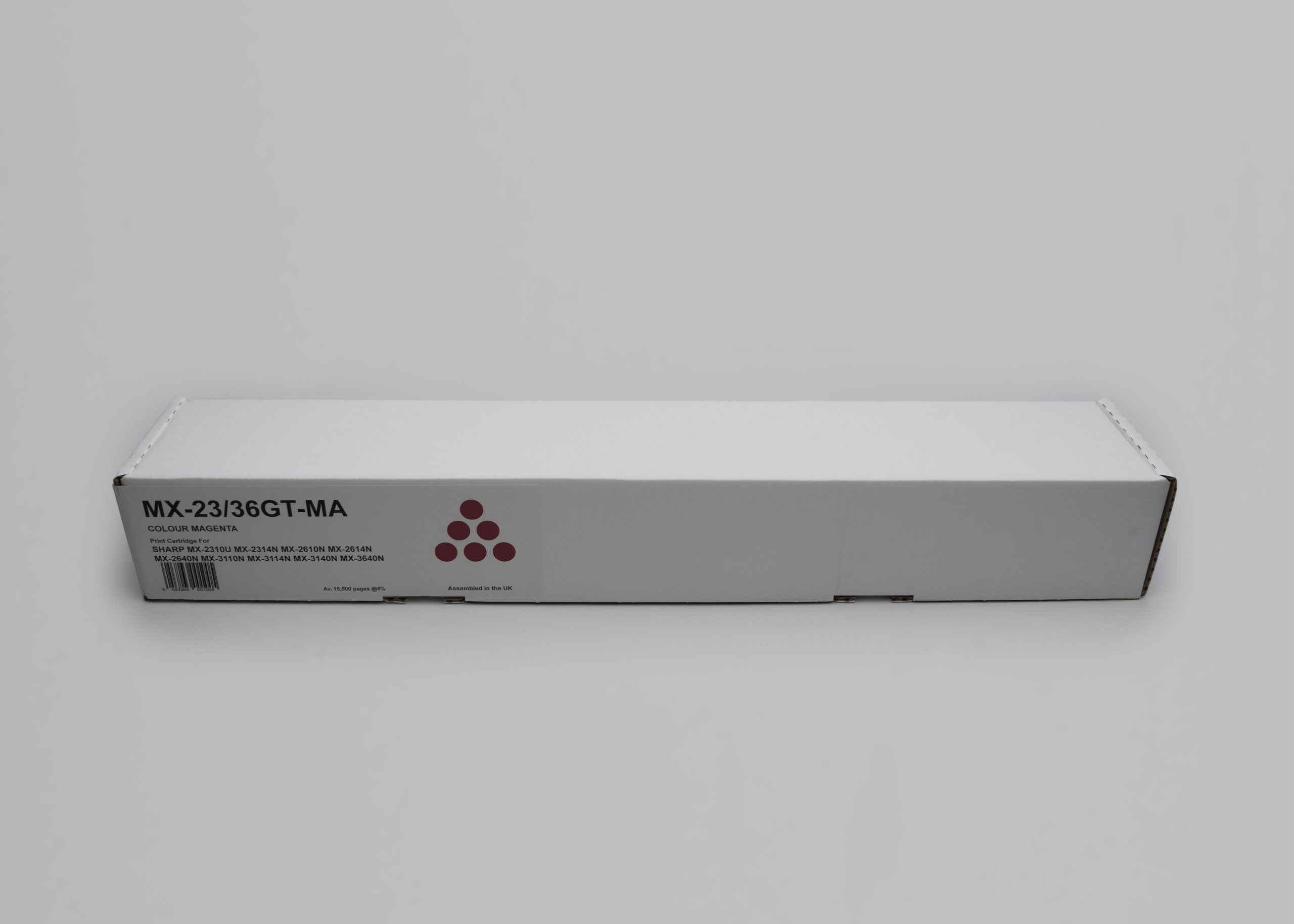 OEM cartridge refilled using OEM toner. Fits the Sharp MX-2310U, MX-2314N, MX-2610N, MX-2614N, MX-2640N, MX-3110N, MX-3114N, MX-3140N, MX-3640N.